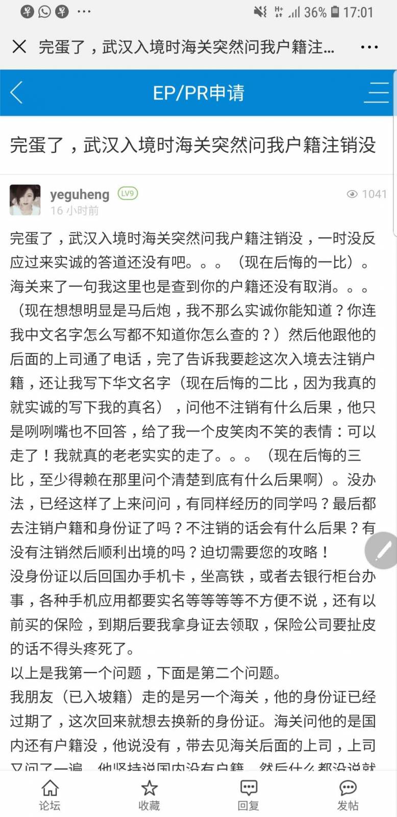完蛋了,武汉入境时海关突然问我户籍注销没,一时没反应过来实诚的答道还没有吧。。。(现在后悔的一比)。海关来了一句我这里也是查到你的户籍还没有取消。。。(现在想想明显是马后炮,我不那么实诚你能知道?你连我中文名字怎么写都不知道你怎么查的?)然后他跟他的后面的上司通了电话,完了告诉我要趁这次入境去注销户籍,还让我写下华文名字(现在后悔的二比,因为我真的就实诚的写下我的真名),问他不注销有什么后果,他只是咧咧嘴也不回答,给了我一个皮笑肉不笑的表情:可以走了!我就真的老老实实的走了。。。(现在后悔的三比,至少得赖在那里问个清楚到底有什么后果啊)。没办法,已经这样了上来问问,有同样经历的同学吗?最后都去注销户籍和身份证了吗?不注销的话会有什么后果?有没有注销然后顺利出境的吗?迫切需要您的攻略!