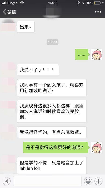 对于身边用新加坡腔的中国人