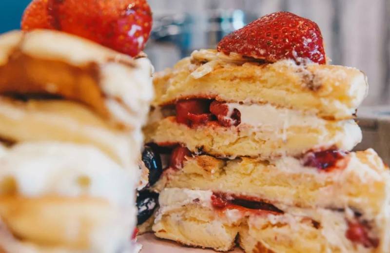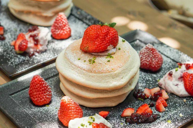 这次登陆新加坡的松饼,走的都是轻盈的路线。这家店的特色就是用蛋白霜来做成“法式千层”松饼,这款松饼看起来厚厚的松松的,非常可爱。