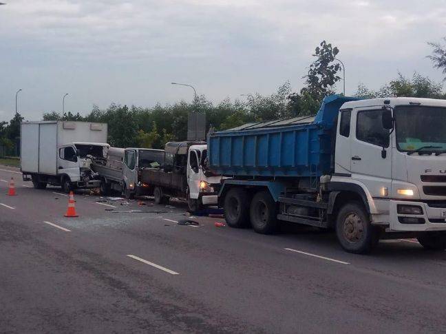这场车祸涉及了1辆翻斗车和3辆罗厘车。