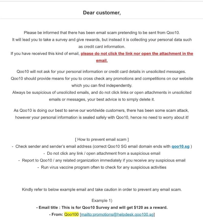 同样的手法,不法分子通过向Qoo10的客户发送诈骗邮件,