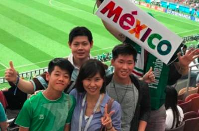 墨西哥在17日晚上爆冷打败卫冕冠军德国,而张伟贤(45岁,律师)一家人当时就在现场见证了球迷们的激动。