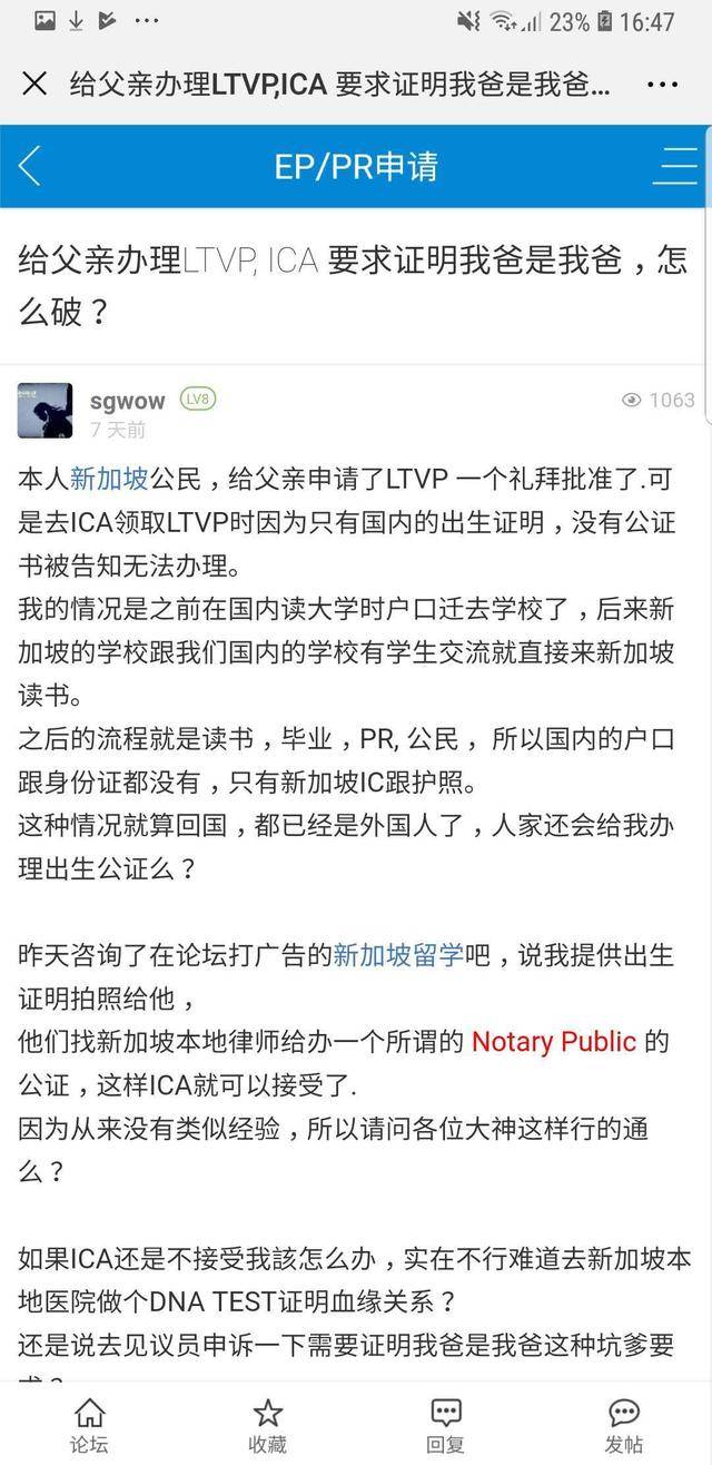 另外,个人的看法,新加坡的政府部门,要求的材料的确是办事需要的,不是为了消遣办事人的,给父亲办理ltvp,出生公证那是必须的,怎么能说这是坑爹要求呢,你就是见议员,不提供证据,议员也不能证明你爸是你爸呀。
