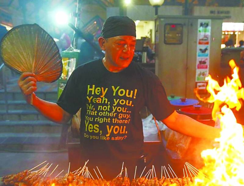 笔者喜欢看小贩处理食物的过程。一些小贩简直就是街头艺人,锅铲碗盘是他的把戏工具,那娴熟的架势是生活提炼出来的完美姿态,用来引诱期待已久的味蕾。什么时候捞起,过冷水需要多长时间,一勺勺的糖、盐和醋依序加入,步骤时间和称量都在心中,几个衔接无缝的动作之后,美食就像魔法一样端到你面前。现在高档餐厅喜欢采用开放式的厨房,其实小贩中心老早就深谙老饕热爱观看食物烹调过程的表演。