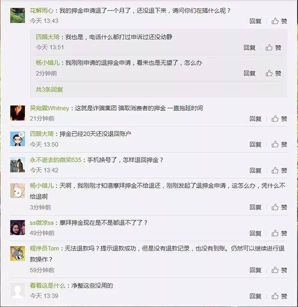 他们强调,已增加人手来应付退款要求,但针对何时能完成退款、具体增加了多少人手,以及是否面临资金周转等问题,oBike并没给予答复。无法取回押金的用户还包括澳大利亚的oBike用户。据oBike的澳洲面簿,不少澳洲用户从去年11月起就申诉收不到退款的问题。据《海峡时报》上周的报道,oBike最近因澳洲墨尔本政府加强管制而决定退出墨尔本市场。