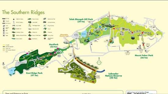 南部的这条9公里长的Southern Ridges步道f景色宜人,其中途经包括Mount Faber公园,Telok Blangah山公园,Hort公园,Kent Ridge公园和拉布拉多公园。