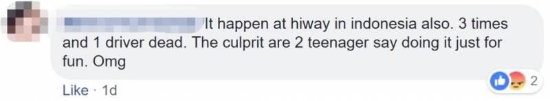(印尼也有发生过3次这种事,一名司机死亡。凶手是2名青少年,理由是为了好玩......我的天)