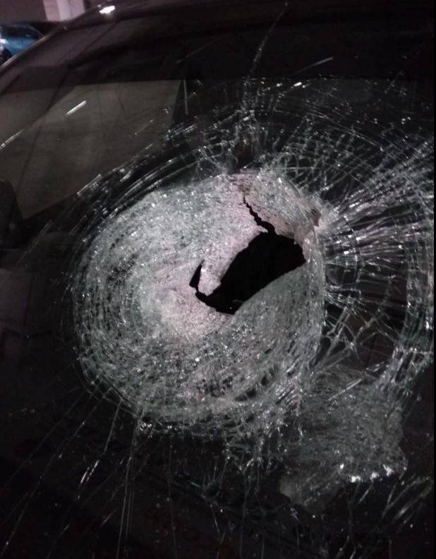 最近的一起案例发生在6月19日,早上5点50分。当时天蒙蒙亮,突然,一大块石头从天而降,砸在了汽车挡风玻璃的左下方,重大的冲击力把玻璃砸出一块大洞,玻璃瞬间碎裂,相当危险!
