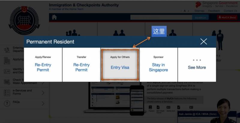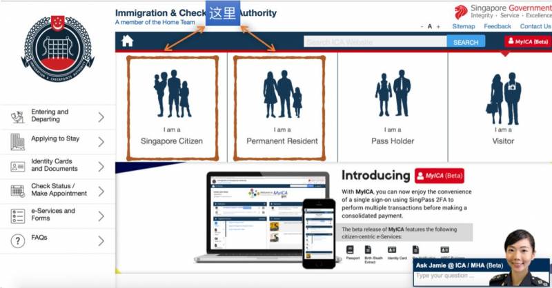 1、首先进入ICA官网(Immigration&Checkpoints Authority)