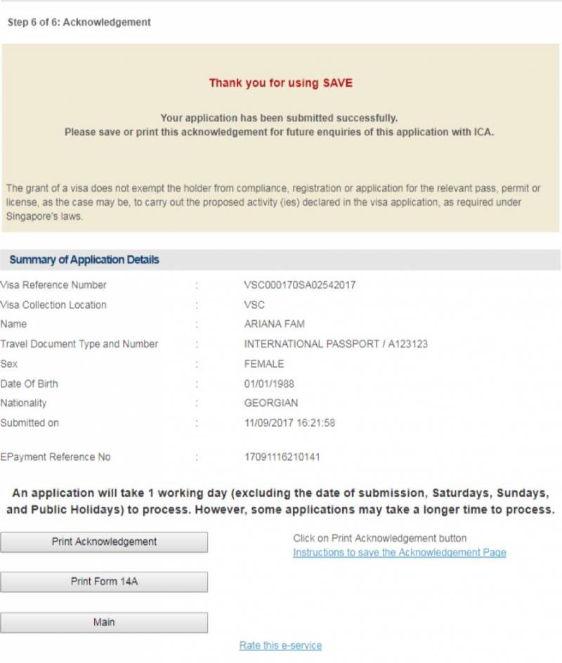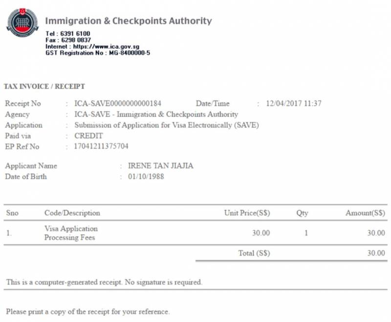 到此就完成申请啦,记得要打印或保存的三份东西分别是:30新币支付成功凭证、确认页面以及Form14。