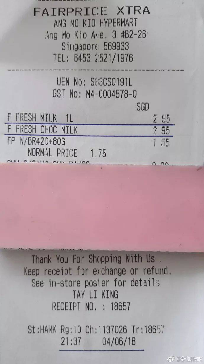 下面是这位网友提供的小票