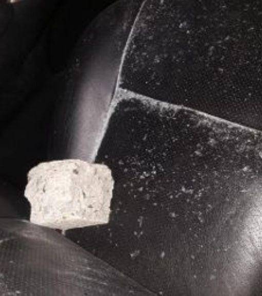 从网友提供的视频中我们可以看出,“行凶”的石块长宽高都几乎超过10厘米,砸中轿车后穿透挡风玻璃落在轿车前方左侧的座位上,同时也导致车内到处散落玻璃碎渣。