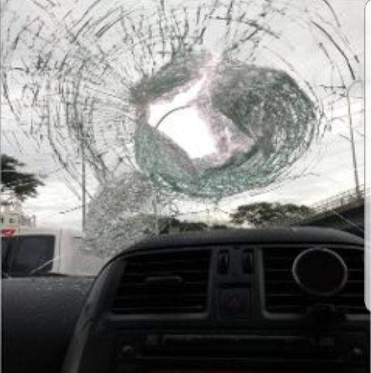 不过,当时砸中他白色轿车的石块,被人用报纸包住从高处抛下,却同样将他的轿车挡玻璃砸穿。