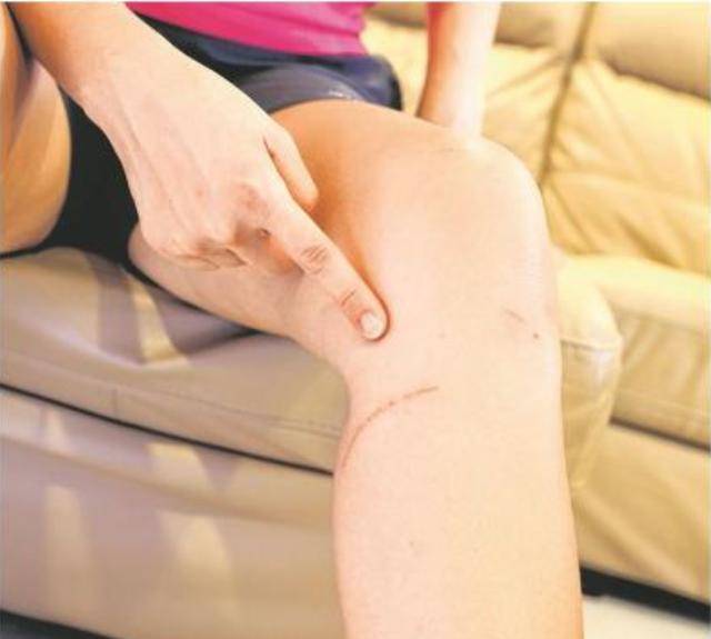 我吓得不断挥动双脚,想要踢开它,小腿也被抓伤,还有部分淤青。”