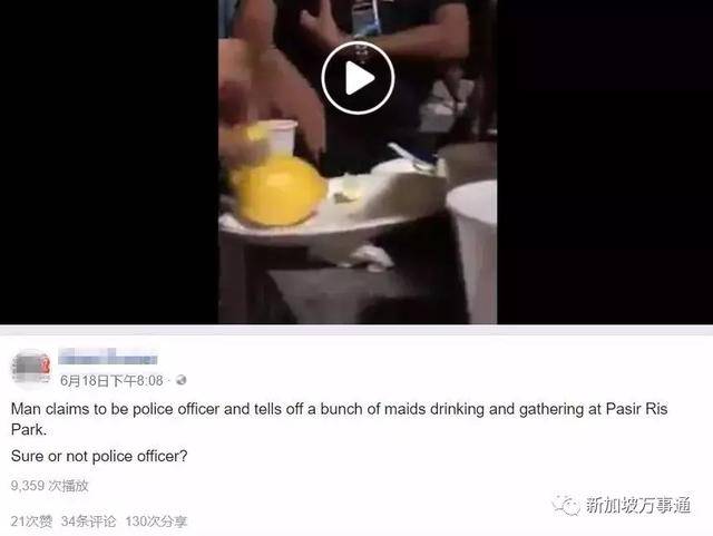 事情源自于6月18日一个视频被上传到Facebook上,视频中是一个小哥与正在公园聚会的女佣们说的话,说他自己是一名警察,并告诉这一群女佣说他可以将他们送进监狱。
