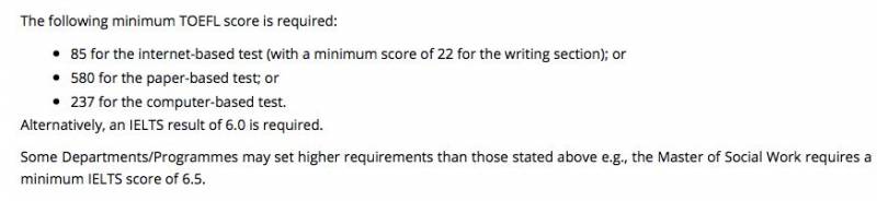 当然,这只是最低标准,虽然没有明确写出来,但如果你报的是文科类的专业(除中文系),当然会更看重英文成绩,雅思一般要比最低标准高出至少0.5分,才有希望~
