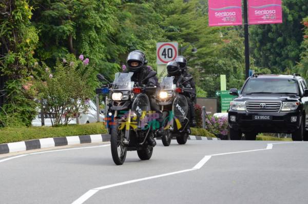 在特金会峰会举行期间,可以见到速部署部队队员骑着高性能的摩哆,环绕酒店周边地区进行反恐巡逻任务。