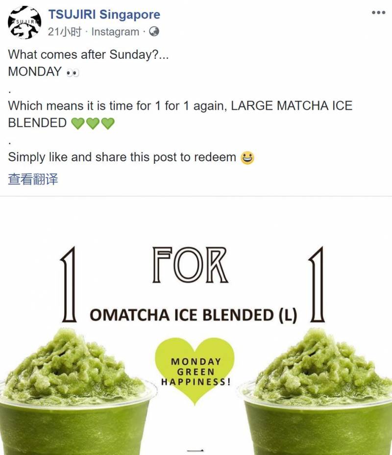 今天的deals里有TSIJIRI抹茶沙冰买一送一活动