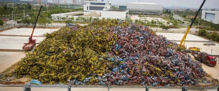 还记得大家在网上看到的会坏了的共享单车被堆成小山!