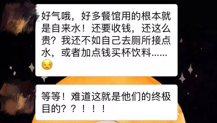 有的餐馆老板说是因为水费上调,运营成本上涨,不得不对白开水收费;