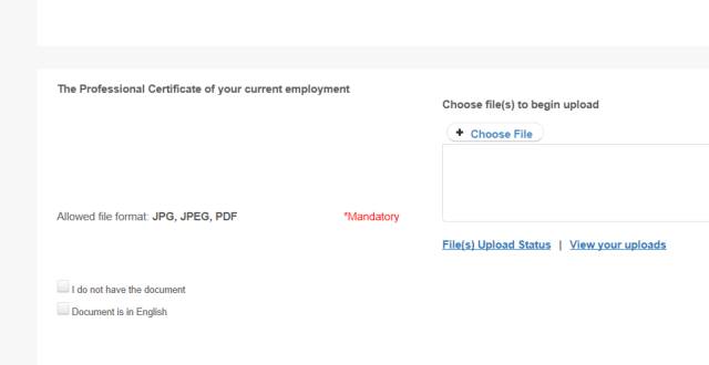 按说也够用了,但是在实际提交中,我们经常发现,申请PR所需上传文件,有时会根据自己表格所填的信息有特别要求,比如说增加了专业资格证书的上传(the professionalcertificate )等等,准备不充分的话,等到96小时一过,原来的预约和填写材料就全部作废,又需要重新来过。