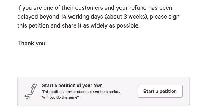 也有网友恐怕已经是忍无可忍了,甚至在网上呼吁oBike的用户们,要是申请的退款超过14个工作日还没有退还到账户上,请共同在请愿书上签名!