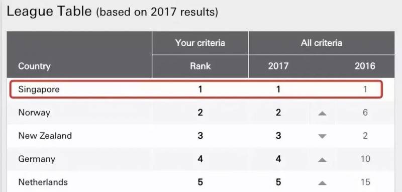在汇丰银行发布的2016年全球最佳移民目的地报告中,新加坡位居“最适合移民者居住和生活的地方”投票榜首位。22017年新加坡仍高居榜首,独占鳌头。