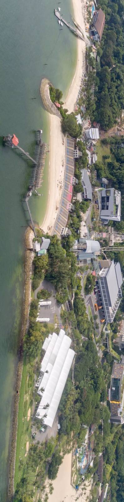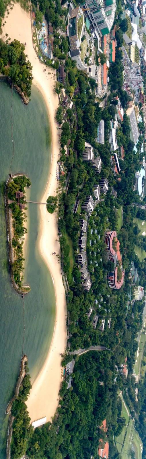巴拉湾海滩(Palawan Beach),中部两个连接的环形的建筑即为让全球瞩目的卡佩拉酒店。