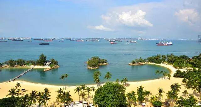 海滩道的沿路风景很怡人,平静的海面,一贯绿植,一面花园,一面海滩。海滩道上有很长的步行扶梯,走走就到了圣淘沙。