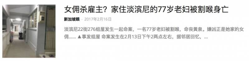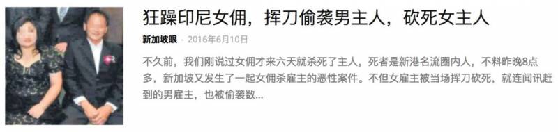 广告女佣杀雇主这种事,在新加坡偶有发生: