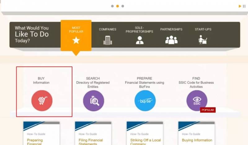 第一步:登陆注册局官网(www.acra.gov.sg) 点击红圈圈内Buy