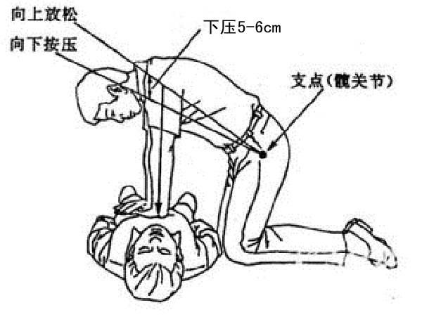 借助身体重力垂直向下,进行用力、快速的胸外按压。按压深度至少达到5 cm(成人)或4 cm(婴儿),