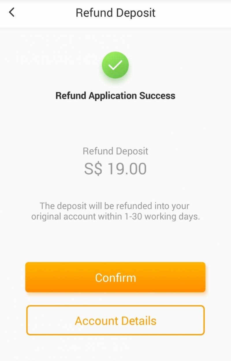 点击‘退回定金’(Refund Deposit)后,跟着指示确认退款。