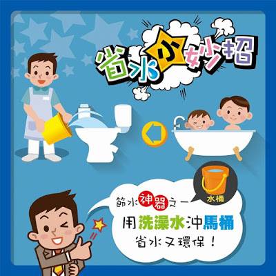 一般马桶的冲水量约为10升,只需一桶水再利用,就可以节省下来啦!