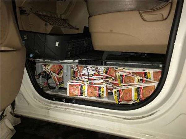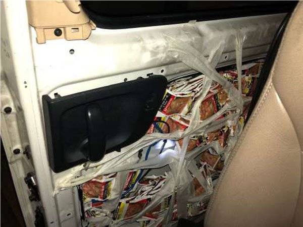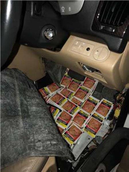 新加坡《联合早报》周四报导,据移民与关卡局面子书照片显示,关卡人员周二截查一辆入境汽车时,在仔细检查车子左右门、车内地毯、车后箱都发现藏有口嚼烟草。