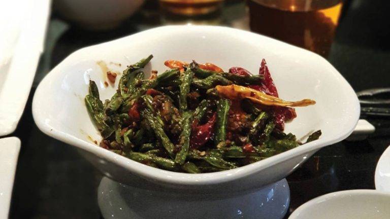 素食者也有素菜可点。将四季豆油炸后再和干辣椒爆炒,不会太油腻,一流的配饭菜~