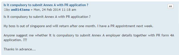现在有网友在网络上询问以下问题:现在申请PR必须要交Annex A吗?因为公司那边要求说如果要帮我写Annex A的话就要我多签两年合同,而我的HR也是Poly毕业,说他申请的时候没有交也是申请到了,所以Annex A 是必须材料吗?