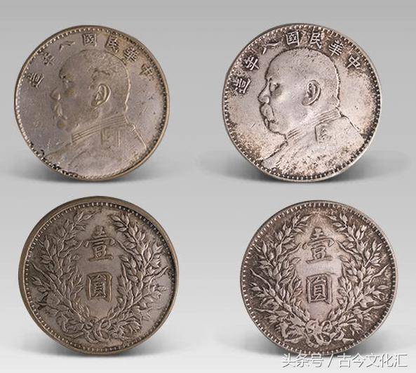 赏析:此组民国八年银币为"袁世凯像背嘉禾银币":正面中间为袁世凯戎装侧五分像,上铸"中华民国八年造 "中文繁体,背面为嘉禾稻之图案(古称生长奇异的禾,古人以之为吉祥的征兆。亦泛指生长茁壮的禾 稻),中央为“壹圆”字样;一枚为(三角圆版:此币背面圆字内的"口"字形成""形。),另外一枚为" 开口"形;且保存较好,其色泽自然、包浆浓厚;不论是文字还是人文图案,都显得自然细腻,深浅合 适;其中的“三角圆”版本,极其珍罕,具有很高的历史文化研究价值及收藏价值!