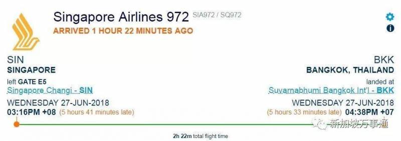一架飞机是SQ972,原定于上午9点35分飞往曼谷,但飞机的一个电子驻车电力设备出现了技术故障。由于故障部件更换后也不行,飞机上的313名乘客只能被转移到了一架波音787-10飞机上。