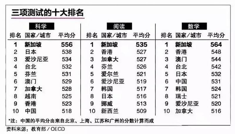 新加坡基础教育近年来发展迅猛,在最新一轮PISA(Program for International Student Assessment)评估中,新加坡学生获得国际PISA测试的总分第一。无论是数学能力、阅读能力还是科学素养,新加坡的青少年才是包揽三项的“全能王”。