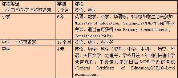 优秀的中学毕业生可升入新加坡政府的理工学院、初级学院或海外大学预科班就读。中学全部为四年制的快捷班,超龄学生也可入读。