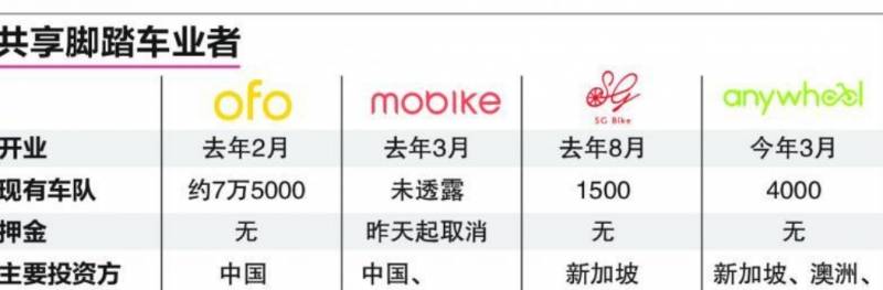 另外三家较具规模的业者ofo、摩拜(Mobike)和Anywheel昨天也赶在7月7日期限前提交执照申请。