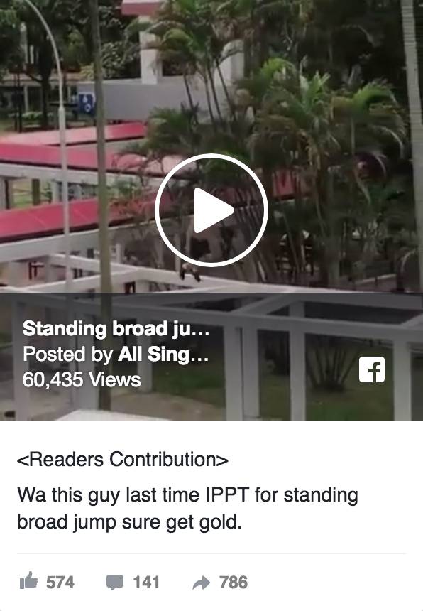 配文也是有才:“这名男子以前在个人体能测验(IPPT)中的立定跳远项目肯定是金水平。”
