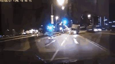 (白色罗厘不知何故不受控制冲入了反方向车道,然后撞倒行驶中的摩托车)