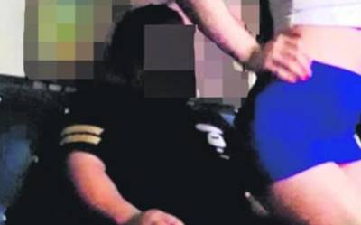 根据其中一个视频显示,一名穿着白色上衣和蓝色短裙的女郎,在一名男子前搔首弄姿、大跳艳舞,跟着直接坐在男子的大腿上。男子也趁机揩油,一手扯下女子上衣,露出右胸。
