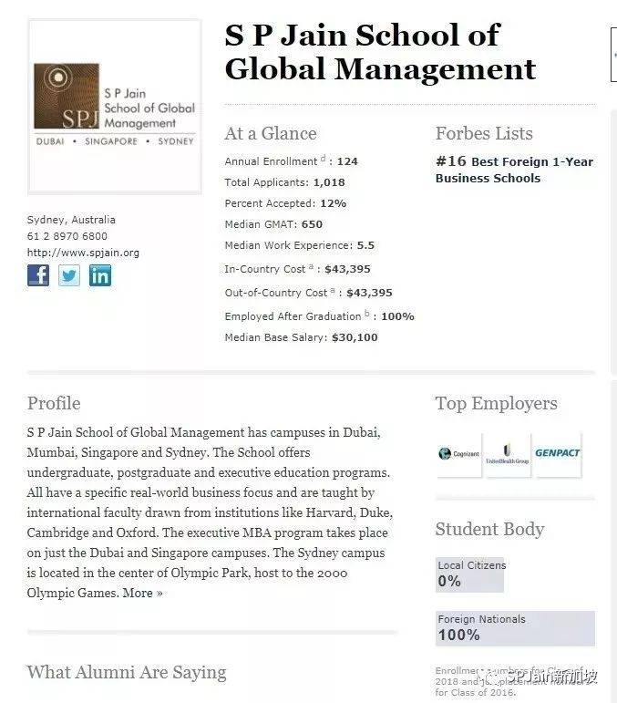 目前在世界范围内,最著名的三大商学院类排名就是Forbes 福布斯,Economists 经济学人和Finanical Times 金融时代。作为新加坡政府邀请入驻的外国源流大学S P Jain 全球管理学院, 让我们一起看看它这些年的在商学院排名的表现: