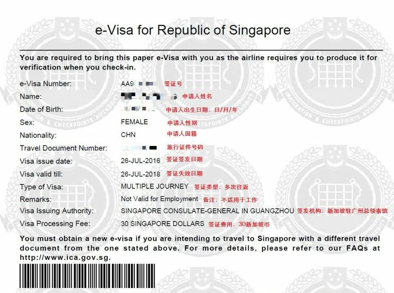 注:从2015年6月1日起,新加坡颁发给中国公民的新加坡多次有效签证(mjv)最长有效期限可达10年。