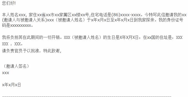 (这里呢,你可以找你的中国的朋友或者亲戚帮你写一封邀请信就好了!)