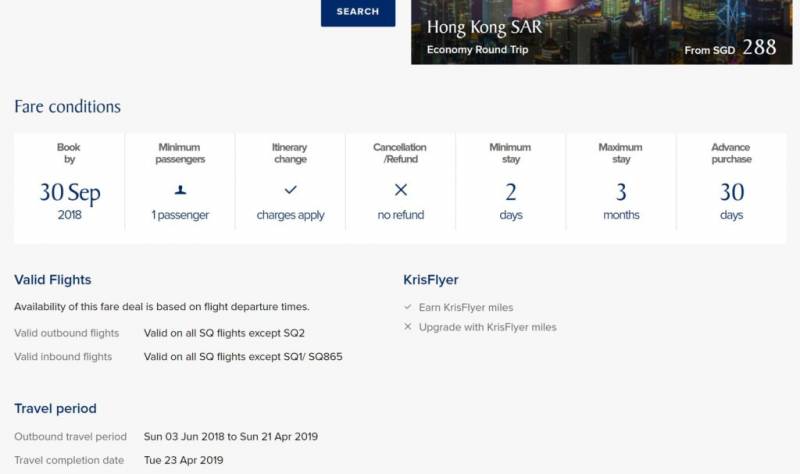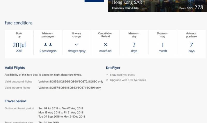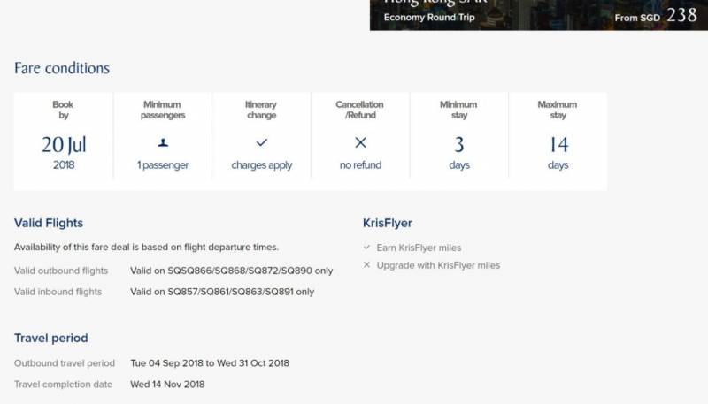 1.新航爸爸三重优惠,飞往香港往返只要S$238!