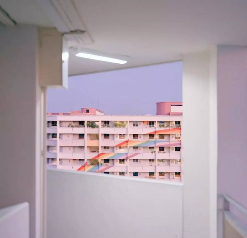 紫丁香色的傍晚,组屋墙壁上的彩虹柔和地融进天空。这是摄影师Nguan的摄影集《新加坡》(Singapore)的封面,这本书被《纽约时报》评为了 2017 年度十佳摄影书之一。